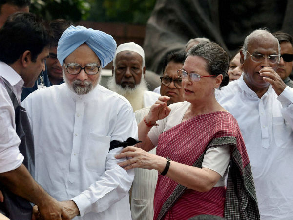 ನವದೆಹಲಿ, ಆ. 05: ಸಂಸತ್ ಸದಸ್ಯರ ಅಮಾನತು ಕ್ರಮವನ್ನು ವಿರೋಧಿಸಿ ನಡೆಯುತ್ತಿರುವ ಕಾಂಗ್ರೆಸ್ ಅಧಿನಾಯಕರ ಪ್ರತಿಭಟನೆ ಬುಧವಾರವೂ ಮುಂದುವರಿದಿದೆ. ಮಾಜಿ ಪ್ರಧಾನಿ ಮನಮೋಹನ್ ಸಿಂಗ್ ಮತ್ತು ಕಾಂಗ್ರೆಸ್ ಅಧ್ಯಕ್ಷೆ ಸೋನಿಯಾ ಗಾಂಧಿ, ಉಪಾಧ್ಯಕ್ಷ ರಾಹುಲ್ ಗಾಂಧಿ, ಮಲ್ಲಿಕಾರ್ಜುನ ಖರ್ಗೆ ಸೇರಿದಂತೆ ಅನೇಕ ಮುಖಂಡರು ಗಾಂಧಿ ಪ್ರತಿಮೆ ಎದುರು ಧರಣಿ ಕುಳಿತಿದ್ದಾರೆ.[ಮಧ್ಯಪ್ರದೇಶದ ಅವಳಿ ರೈಲು ದುರಂತದ ಚಿತ್ರಗಳು]