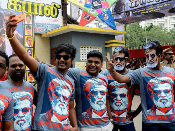 ಚೆನ್ನೈ ನಲ್ಲಿ ಕಬಾಲಿ ಚಿತ್ರ ನೋಡಿ ಹೊರಬಂದ ರಜನಿಕಾಂತ್ ಅಭಿಮಾನಿಗಳು ಸೆಲ್ಫಿ ತೆಗೆದುಕೊಂಡು ಸಂಭ್ರಮಿಸಿದರು.