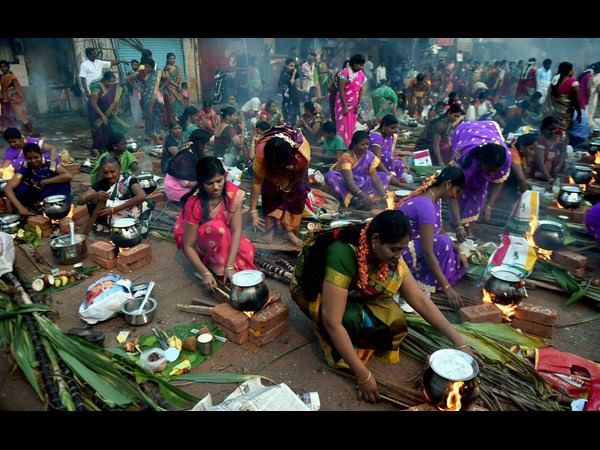 ಮುಂಬೈನಲ್ಲಿ ಪೊಂಗಲ್ ಸಿದ್ಧ ಮಾಡುತ್ತಿರುವ ಮಹಿಳೆಯರು.