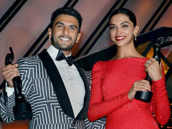 ಪ್ರಶಸ್ತಿ ಪಡೆದ ಸಂಭ್ರಮದಲ್ಲಿ ಬಾಲಿವುಡ್ ಬೆಡಗಿ ದೀಪಿಕಾ ಪಡುಕೋಣೆ, ನಟ ರಣವೀರ್ ಸಿಂಗ್.