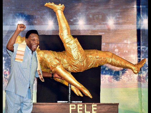 ತಮ್ಮದೇ ವಿಶೇಷ ಭಂಗಿಯ ಗೋಲು ಹೊಡೆಯುವ ಪುತ್ಥಳಿಯನ್ನು ಕೋಲ್ಕತ್ತಾದಲ್ಲಿ ಅನಾವರಣ ಮಾಡಿದ ವಿಶ್ವ ಪುಟ್ಬಾಲ್ ಸಾಮ್ರಾಟ ಪೀಲೆ.