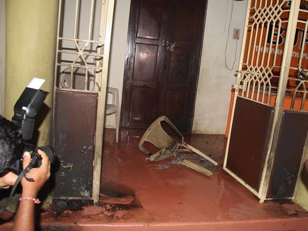 ಬೈಕ್ ನಲ್ಲಿ ಬಂದ ಇಬ್ಬರು ದುಷ್ಕರ್ಮಿಗಳು ಈ ದಾಳಿ ನಡೆಸಿದ್ದಾರೆ. ಆ ವೇಳೆ ಕಚೇರಿಯಲ್ಲಿ ಯಾರೂ ಇಲ್ಲದಿದ್ದರಿಂದ ಅದೃಷ್ಟವಶಾತ್ ಯಾವುದೇ ಪ್ರಾಣಾಹಾನಿಯಾಗಿಲ್ಲ. ಕಚೇರಿ ಮುಂಭಾಗದಲ್ಲಿದ್ದ ಕುರ್ಚಿಯೊಂದು ಸುಟ್ಟುಹೋಗಿದೆ ಎಂದು ಪೊಲೀಸರು ತಿಳಿಸಿದ್ದಾರೆ.