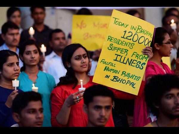 ಅನಿಲ ದುರಂತದ ಪರಿಣಾಮವನ್ನು ಭೋಪಾಲ್ ನಲ್ಲಿ ಇನ್ನು ಅನುಭವಿಸುತ್ತಿದ್ದು ಅವರಿಗೆಲ್ಲ ನೆರವು ನೀಡಬೇಕಿದೆ ಎಂಬ ಭಿತ್ತಿ ಪತ್ರ ಪ್ರದರ್ಶನ.