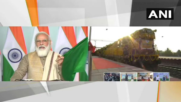 PM Narendra Modi flags off 100th Kisan Rail from Sangola in Maharashtra to Shalimar in West Bengal, via video conferencing. Union Ministers Narendra Singh Tomar and Piyush Goyal also present. pic.twitter.com/yx9EyJiFfc