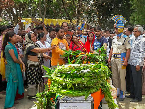 ಚತ್ತೀಸ್ ಘಡದ ಸುಕ್ಮಾ ಜಿಲ್ಲೆಯಲ್ಲಿ ಜಿಲ್ಲೆಯಲ್ಲಿ ನಕ್ಸಲ್ ಧಾಳಿಯಲ್ಲಿ ಹತರಾದ ಸಿಆರ್ ಪಿಎಫ್ ಸಬ್ ಇನ್ ಸ್ಪೆಕ್ಟರ್ ಅನಿಲ್ ಕುಮಾರ್ ಮೌರ್ಯ ಅಂತ್ಯಕ್ರಿಯೆ ಅವರ ಸ್ವಗ್ರಾಮ ಅಮೇಥಿ ಜಿಲ್ಲೆಯ ಪೂರೆ ಖೋಜ್ವಾ ಗ್ರಾಮದಲ್ಲಿ ನಡೆಯಿತು. ಅಂತ್ಯಕ್ರಿಯೆ ವೇಳೆ ದುಃಖಿಸುತ್ತಿರುವ ಕುಟುಂಬ ಸದಸ್ಯರು.