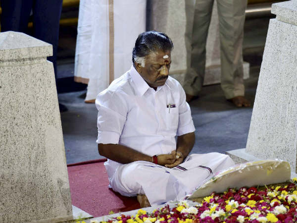 ತಮಿಳುನಾಡು ಮುಖ್ಯಮಂತ್ರಿ ಒ.ಪನ್ನೀರ್ ಸೆಲ್ವಂ ಮಂಗಳವಾರ ಚೆನ್ನೈನ ಮರೀನಾ ಬೀಚ್ ನಲ್ಲಿರುವ ಜಯಲಲಿತಾ ಸಮಾಧಿ ಎದುರು ಧ್ಯಾನ ಮಾಡಿದರು. ಕಳೆದ ಭಾನುವಾರವಷ್ಟೇ ತಮ್ಮ ಸ್ಥಾನಕ್ಕೆ ರಾಜೀನಾಮೆ ನೀಡಿ, ಶಶಿಕಲಾ ನಟರಾಜನ್ ಅವರಿಗೆ ದಾರಿ ಮಾಡಿಕೊಟ್ಟಿರುವ ಒಪಿಎಸ್, ಇದೀಗ ಬಂಡಾಯದ ಧ್ವನಿ ಎತ್ತಿದ್ದಾರೆ.