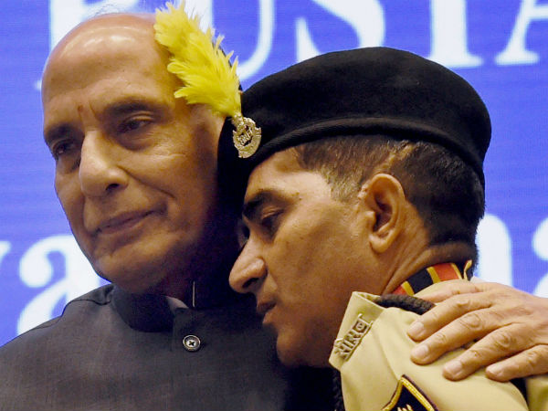 15ನೇ ಬಿಎಸ್ಎಫ್ ಪ್ರಶಸ್ತಿ ಪ್ರಧಾನ ಸಮಾರಂಭ ಗುರುವಾರ ನವದೆಹಲಿಯಲ್ಲಿ ನಡೆಯಿತು. ಕಾರ್ಯಕ್ರಮದಲ್ಲಿ ರಾಜನಾಥ್ ಸಿಂಗ್ ಶಿಷ್ಟಾಚಾರವನ್ನು ಬದಿಗೊತ್ತಿ ಗೋಧ್ ರಾಜ್ ಮೀನಾರನ್ನು ಅಪ್ಪಿಕೊಂಡರು.