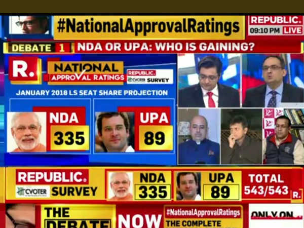 ನವದೆಹಲಿ, ಜನವರಿ 19: ಜಿಎಸ್ಟಿ, ಅಪನಗದೀಕರಣ, ಜಿಡಿಪಿ ದರದಲ್ಲಿ ಇಳಿಕೆ ಇತ್ಯಾದಿ ಕಾರಣಗಳು ಕೇಂದ್ರದ ಎನ್ ಡಿಎ(ನ್ಯಾಶನಲ್ ಡೆಮಾಕ್ರಟಿಕ್ ಅಲಿಯನ್ಸ್) ಸರ್ಕಾರದ ಜನಪ್ರಿಯತೆಯನ್ನು ಕಡಿಮೆ ಮಾಡಿದೆಯಾ? 'ಖಂಡಿತ ಇಲ್ಲ' ಎನ್ನುತ್ತದೆ ಅರ್ನಬ್ ಗೋಸ್ವಾಮಿ ನೇತೃತ್ವದ ರಿಪಬ್ಲಿಕ್ ಟಿವಿ ಮತ್ತು ಸಿವೋಟರ್ ನಡೆಸಿದ ಸಮೀಕ್ಷೆ.