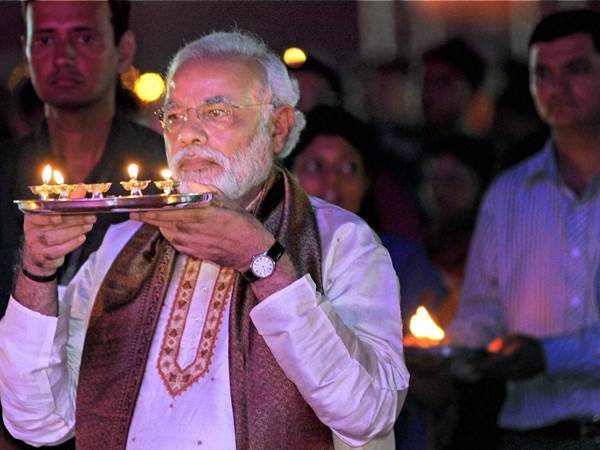 ಅಹಮದಾಬಾದ್ : ನವರಾತ್ರಿ ಪೂಜೆ ಸಂದರ್ಭದಲ್ಲಿ ಆರತಿ ಬೆಳಗುತ್ತಿರುವ ಬಿಜೆಪಿ ಪ್ರಧಾನಿ ಅಭ್ಯರ್ಥಿ ನರೇಂದ್ರ ಮೋದಿ