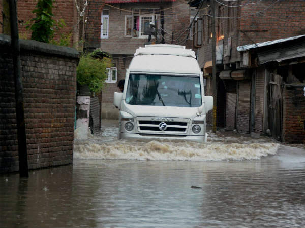 ಜಮ್ಮು ಕಾಶ್ಮೀರದ ರಾಜಧಾನಿ ಶ್ರೀನಗರದಲ್ಲಿ ಗುರುವಾರ ಭಾರೀ ಮಳೆ ಸುರಿಯಿತು. ಜಲಾವೃತವಾಗಿರುವ ರಸ್ತೆಯಲ್ಲಿ ಮುಂದೆ ಸಾಗಲು ವಾಹನ ಚಾಲಕನೊಬ್ಬ ಪರದಾಡುತ್ತಿದ್ದಾನೆ.