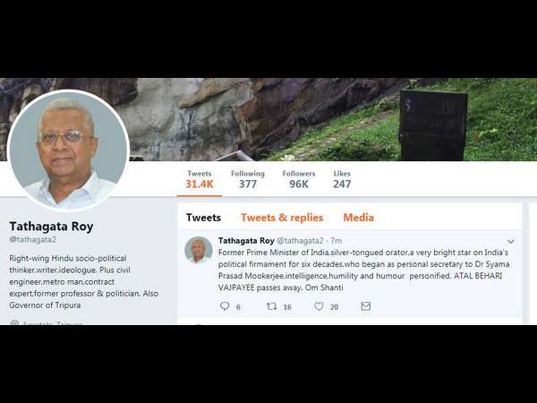 "ಭಾರತದ ಮಾಜಿ ಪ್ರಧಾನಿ, ಅತ್ಯುತ್ತಮ ವಾಗ್ಮಿ, ಭಾರತದ ರಾಜಕೀಯದ ಧ್ರುವತಾರೆ... ಅಟಲ್ ಬಿಹಾರಿ ವಾಜಪೇಯಿ ಇಲ್ಲಿಲ್ಲ. ಓಂ ಶಾಂತಿ" ಎಂದು ತಥಾಗತ ರಾಯ್ ಟ್ವೀಟ್ ಮಾಡಿದ್ದರು.