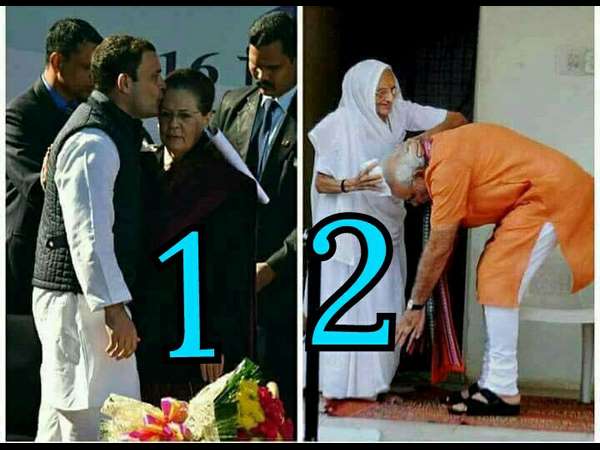 ಎಐಸಿಸಿ ಅಧ್ಯಕ್ಷರಾಗಿ ರಾಹುಲ್ ಗಾಂಧಿ ಅಧಿಕಾರ ಸ್ವೀಕರಿಸಿದ ಸಂದರ್ಭದಲ್ಲಿ ತನ್ನ ತಾಯಿ ಸೋನಿಯಾ ಗಾಂಧಿಗೆ ಪ್ರೀತಿಯ ಮುತ್ತನ್ನು ಇಟ್ಟು ಆಶೀರ್ವಾದ ಪಡೆದುಕೊಂಡಿದ್ದರು. ಈ ವಿಷಯವನ್ನು ಇಟ್ಟುಕೊಂಡು, ಮೋದಿ ತನ್ನ ತಾಯಿಯ ಬಳಿ ಆಶೀರ್ವಾದ ಪಡೆಯುವ ದೃಶ್ಯ ಮತ್ತು ರಾಹುಲ್ ಆಶೀರ್ವಾದ ಪಡೆಯುವ ಪದ್ದತಿಯನ್ನು ತಾಳೆಹಾಕಿ ಚರ್ಚೆ ನಡೆಯುತ್ತಿದೆ.