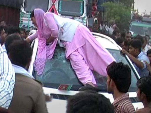 ಉತ್ತರ ಪ್ರದೇಶದ ಆಗ್ರಾದಲ್ಲಿ ಈ ಘಟನೆ ನಡೆದಿದ್ದು, ಯುವತಿಯೊಬ್ಬರು ಸಮಾಜವಾದಿ ಪಕ್ಷದ ಮುಖಂಡ ಅಭಿನವ್ ಶರ್ಮ ಅವರ ಮರ್ಸಿಡೀಸ್ ಕಾರಿನ ಮುಂಭಾಗವನ್ನೇರಿ ಬಾವುಟ ಕಿತ್ತು ಹಾಕಿ, ವಿಂಡ್ ಶೀಲ್ಡ್ ಕಿತ್ತು ಹಾಕಿದ್ದಾರೆ. ಅಭಿನವ್ ಶರ್ಮ್ ಅವರ ಸೆಕ್ಯುರಿಟಿ ಗಾರ್ಡ್ ಅವರೊಬ್ಬರು ಯುವತಿಗೆ ಕಣ್ಣು ಹೊಡೆದಿದ್ದಕ್ಕೆ ಈ ರೀತಿ ಪ್ರತಿಭಟನೆ ವ್ಯಕ್ತವಾಗಿದೆ.
