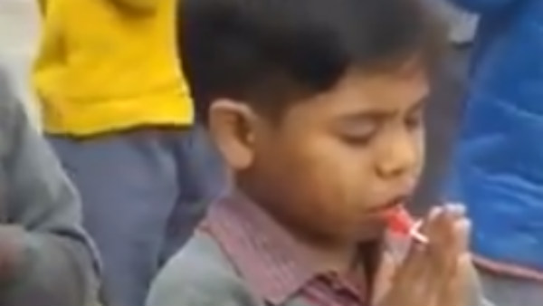 ವೈರಲ್ ವಿಡಿಯೋ; ಪ್ರಾರ್ಥನೆ ಮಾಡುತ್ತಲೇ ಕ್ಯಾಂಡಿ ಸವಿದ ಬಾಲಕ!