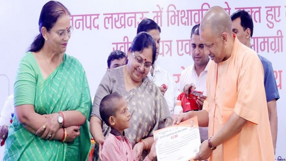 ಭಿಕ್ಷುಕರಿಂದ ರಕ್ಷಿಸಲ್ಪಟ್ಟ ಮಕ್ಕಳಿಗೆ ಶೈಕ್ಷಣಿಕ ಕಿಟ್ ವಿತರಿಸಿದ ಯೋಗಿ ಆದಿತ್ಯನಾಥ್