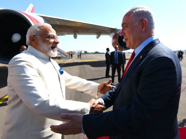 ಮೋದಿ ವಿಮಾನವಿಳಿಯುತ್ತಿದ್ದಂತೆ ಬಂದು ಅಪ್ಪಿಕೊಂಡು ನೇತನ್ಯಾಹು 'ಆಪ್ಕಾ ಸ್ವಾಗತ್ ಹೇ ಮೇರೆ ದೋಸ್ತ್ .. ' ಎಂದು ಹಿಂದಿಯಲ್ಲಿ ಪ್ರಧಾನಿ ನರೇಂದ್ರ ಮೋದಿಯನ್ನು ಸ್ವಾಗತಿಸಿದರು.