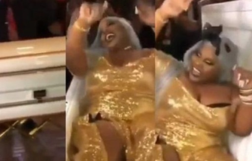 ಈ ವೇಳೆ ಹಾಲ್ ನಲ್ಲಿ ಸೇರಿದ್ದ ಜನರು ವಧುವನ್ನ ಹುರಿದುಂಬಿಸುತ್ತಾರೆ. ನಗುತ್ತಲೇ ಶವಪೆಟ್ಟಿಗೆಯಿಂದ ವಧು ಹೊರ ಬಂದ ದೃಶ್ಯವನ್ನು ಕೆಲವರು ಕ್ಯಾಮೆರಾದಲ್ಲಿ ಸೆರೆ ಹಿಡಿದು ಸಾಮಾಜಿಕ ಜಾಲತಾಣದಲ್ಲಿ ಹರಿಬಿಟ್ಟಿದ್ದಾರೆ. ಸದ್ಯ ಈ ವಿಡಿಯೋ ಸಖತ್ ವೈರಲ್ ಆಗಿದೆ.