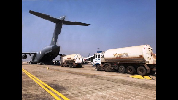 ಸಿ-17 ವಿಮಾನಗಳ ಮೂಲಕ ದುಬೈ ಪಾನಾಗಢ ವಾಯುನೆಲೆಗೆ 6 ಕ್ರಯೋಜೆನಿಕ್ ಆಕ್ಸಿಜನ್ ಕಂಟೇನರ್ಗಳು ಹಾಗೂ ಸಿಂಗಾಪುರದಿಂದ ಮೂರು ಕಂಟೇನರ್ಗಳನ್ನು ತರಲಾಗಿದೆ ಎಂದು ತಿಳಿಸಲಾಗಿದೆ.