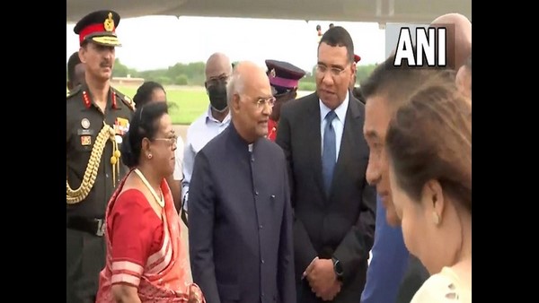 ರಾಷ್ಟ್ರಪತಿ ರಾಮನಾಥ ಕೋವಿಂದ್ಗೆ ಜಮೈಕಾದಲ್ಲಿ ಭವ್ಯ ಸ್ವಾಗತ