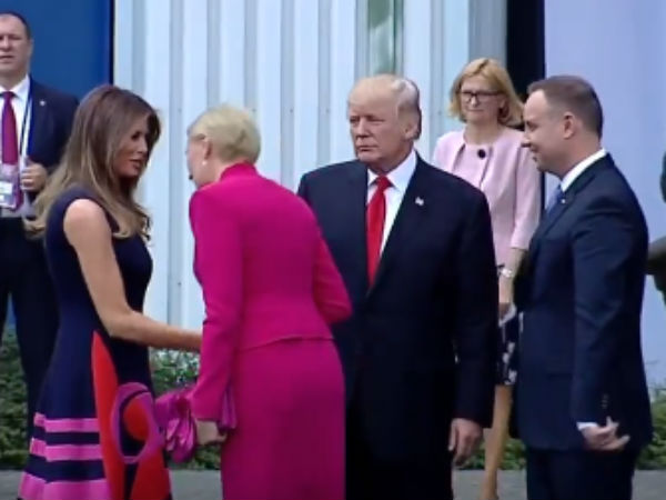 ಪೊಲೆಂಡ್ ಪ್ರವಾಸದಲ್ಲಿರುವ ಡೊನಾಲ್ಡ್ ಟ್ರಂಪ್ ಗೆ ಪೊಲೆಂಡ್ ಅಧ್ಯಕ್ಷ ಅಂಡ್ರ್ಜೆಜ್ ಡುಡಾ ಅವರ ಪತ್ನಿ ಅಗತಾ ಕೊರ್ನೌಸರ್ ಸಖತ್ತಾಗಿ 'ಕೈಕೊಟ್ಟ' ವಿಡಿಯೋ ಇದೀಗ ಸಾಮಾಜಿಕ ಜಾಲತಾಣಗಳಲ್ಲಿ ವೈರಲ್ ಆಗಿದೆ.