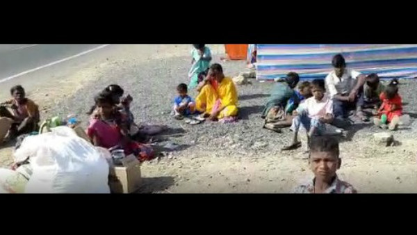 ಕೈಯಲ್ಲಿ ಕಾಸಿಲ್ಲದೆ, ಸಾರಿಗೆ ವ್ಯವಸ್ಥೆ ಇಲ್ಲದೆ, ತಿನ್ನಲು ಆಹಾರವೂ ಇಲ್ಲದ ಸುಮಾರು 50 ಕಾರ್ಮಿಕರು ನಡೆದುಕೊಂಡೇ ಮಹಾರಾಷ್ಟ್ರಕ್ಕೆ ತೆರಳುತ್ತಿದ್ದಾರೆ. ಪುಟ್ಟ ಪುಟ್ಟ ಕಂದಮ್ಮಗಳನ್ನ ತೋಳಲ್ಲಿ ಹೊತ್ತುಕೊಂಡು ರಣಬಿಸಿಲಿನಲ್ಲಿ ಗೂಡು ಸೇರಲು ಹೊರಟಿದ್ದಾರೆ ವಲಸೆ ಕಾರ್ಮಿಕರು.