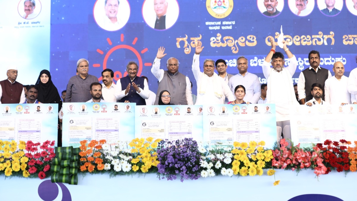ಕಲಬುರಗಿಯಲ್ಲಿ ನಡೆದ 200 ಯೂನಿಟ್ಗಳವರೆಗೆ ಉಚಿತ ವಿದ್ಯುತ್ ನೀಡುವ 'ಗೃಹ ಜ್ಯೋತಿ' ಯೋಜನೆಗೆ ಶನಿವಾರ ಚಾಲನೆ ನೀಡಲಾಗಿದೆ. ಮುಖ್ಯಮಂತ್ರಿ ಸಿದ್ದರಾಮಯ್ಯ ಅಧಿಕೃತವಾಗಿ ಯೋಜನೆಗೆ ಚಾಲನೆ ನೀಡಿದ್ದಾರೆ. ಈ ವೇಳೆ, ಎಐಸಿಸಿ ಅಧ್ಯಕ್ಷ ಮಲ್ಲಿಕಾರ್ಜುನ ಖರ್ಗೆ, ಕೆಪಿಸಿಸಿ ಅಧ್ಯಕ್ಷ ಡಿಕೆ ಶಿವಕುಮಾರ್ ಸೇರಿದಂತೆ ಹಲವು ನಾಯಕರು ಉಪಸ್ಥಿತರಿದ್ದರು.