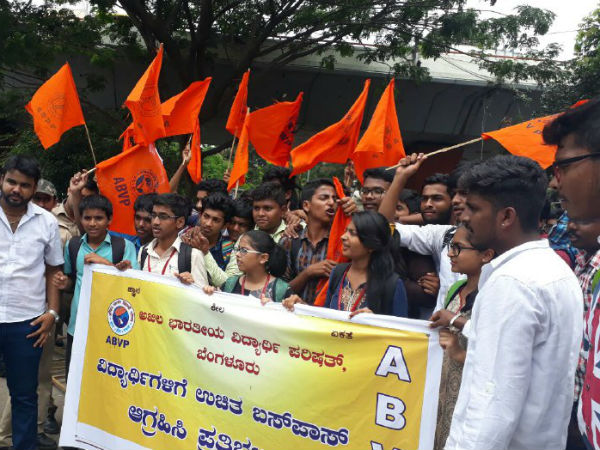 ಉಚಿತ ಬಸ್ ಪಾಸ್ ವಾಪಸಾತಿ ವಿರೋಧಿಸಿ ಎಬಿವಿಪಿ ಪ್ರತಿಭಟನೆ