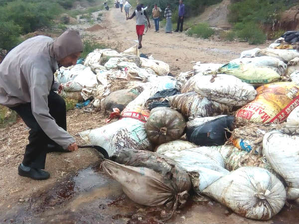 ಈ ಬಗ್ಗೆ ಗುಂಡ್ಲುಪೇಟೆಯ ಪೊಲೀಸ್ ಠಾಣೆಗೆ ದೂರವಾಣಿ ಮೂಲಕ ತಿಳಿಸಿದ್ದರೂ ಯಾವುದೇ ಪ್ರಯೋಜನವಾಗಿಲ್ಲ. ಇದರಿಂದ ಆಕ್ರೋಶಗೊಂಡ ಗ್ರಾಮಸ್ಥರು ಪ್ರತಿಭಟನೆಗಿಳಿದಿದ್ದು, ನಂತರ ತಾಲೂಕು ಆರೋಗ್ಯಾಧಿಕಾರಿ ಡಾ.ನರೇಂದ್ರಬಾಬು ಸ್ಥಳಕ್ಕೆ ಭೇಟಿ ನೀಡಿ ಚೀಲಗಳನ್ನು ಬಿಚ್ಚಿ ಪರಿಶೀಲನೆ ನಡೆಸಿದಾಗ ಅವುಗಳಲ್ಲಿ ಕೋಳಿ, ಕುರಿ ಹಾಗೂ ಜಾನುವಾರುಗಳ ಮಾಂಸದ ನಿರುಪಯುಕ್ತ ಭಾಗಗಳು, ಮೂಳೆ ಹಾಗೂ ಕೊಂಬುಗಳಿದ್ದು, ಇವುಗಳನ್ನು ಹೊಂಡ ತೆಗೆದು ಭೂಮಿಯಲ್ಲಿ ಹೂಳುವಂತೆ ಗ್ರಾಮಪಂಚಾಯಿತಿಗೆ ಸೂಚಿಸಿದ್ದಾರೆ.