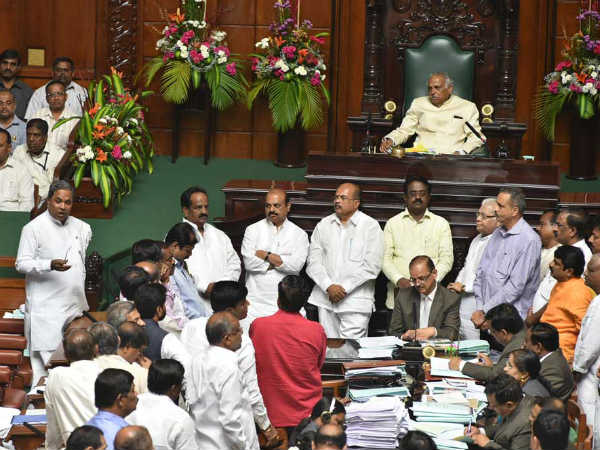 ರೈತರ ಸಾಲ ಮತ್ತು ಬಡ್ಡಿಯನ್ನು ಮನ್ನಾ ಮಾಡಬೇಕು ಎಂದು ಒತ್ತಾಯಿಸಿದ ಬಿಜೆಪಿ ಸದಸ್ಯರು ಸದನದ ಬಾವಿಗಿಳಿದು ಪ್ರತಿಭಟನೆ ಆರಂಭಿಸಿದರು. ನಿಲುವಳಿ ಸೂಚನೆಯಡಿ ರೈತರ ಆತ್ಮಹತ್ಯೆ ಪ್ರಕರಣದ ಚರ್ಚೆಗೆ ಅವಕಾಶ ನೀಡುವುದಿಲ್ಲ ಎಂದು ಸ್ಪೀಕರ್ ಕಾಗೋಡು ತಿಮ್ಮಪ್ಪ ಅವರು ಹೇಳಿದ್ದರಿಂದ ಬಿಜೆಪಿ ಸದಸ್ಯರು ಸಭಾತ್ಯಾಗ ಮಾಡಿದರು. [ರೈತರ ಮನೆಗೆ ಭೇಟಿ ನೀಡುವೆ : ಸಿದ್ದರಾಮಯ್ಯ]