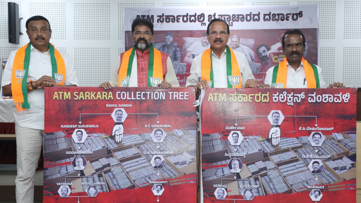ರಾಜ್ಯ ಬಿಜೆಪಿ ಕಾರ್ಯಾಲಯ ಜಗನ್ನಾಥ ಭವನದಲ್ಲಿ ಇಂದು ಮಾಜಿ ಮುಖ್ಯಮಂತ್ರಿಗಳಾದ ಶ್ರೀ @DVSadanandGowda ಅವರು ರಾಜ್ಯ ಕಾಂಗ್ರೆಸ್ನ "ಎಟಿಎಂ ಸರ್ಕಾರದ ಕಲೆಕ್ಷನ್ ವಂಶಾವಳಿ" ಪೋಸ್ಟರ್ ಬಿಡುಗಡೆಗೊಳಿಸಿದರು.