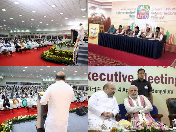 — BJP Karnataka (@bjpkarnataka) April 3, 2015 ಕಾರ್ಯಕಾರಿಣಿ ಸಭೆ ಬಳಿಕ ಬಸವನಗುಡಿ ನ್ಯಾಷನಲ್ ಕಾಲೇಜು ಮೈದಾನದಲ್ಲಿ ಬೃಹತ್ ಸಮಾವೇಶ ಆಯೋಜನೆ ಮಾಡಲಾಗಿದೆ. ಪ್ರಧಾನಿ ಮೋದಿ, ಬಿಜೆಪಿ ಅಧ್ಯಕ್ಷ ಅಮಿತ್ ಶಾ ಸಮಾವೇಶ ಉದ್ದೇಶಿಸಿ ಮಾತನಾಡಲಿದ್ದಾರೆ. [ಮೋದಿ ಸಮಾವೇಶ, ಸಂಚಾರ ಮಾರ್ಗ ಬದಲಾವಣೆ]