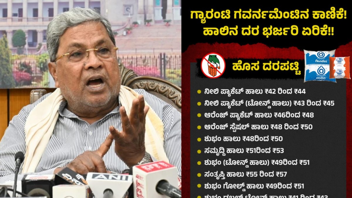 ಹಾಲಿನ ದರ ಏರಿಕೆ ಮಾಡಿರುವ ಕಾಂಗ್ರೆಸ್ ಸರ್ಕಾರ ವಿರುದ್ಧ ಬಿಜೆಪಿ ಕೂಡ ವಾಗ್ದಾಳಿ ನಡೆಸಿದ್ದು, ಹಾಲು ಉತ್ಪಾದಕರಿಗೆ ಹಾಲಾಹಲ ನೀಡಿದ್ದ ಕಾಂಗ್ರೆಸ್ ಸರ್ಕಾರ ಈಗ ಗ್ರಾಹಕರಿಗೆ ಅಕ್ಷರಶಃ ಬೆಲೆಯೇರಿಕೆಯ ವಿಷವುಣಿಸುತ್ತಿದೆ. ಹಾಲು ಉತ್ಪಾದಕರಿಗೆ ಸಬ್ಸಿಡಿ ನೀಡದೆ ಭಂಡತನ ತೋರಿದ ಕಾಂಗ್ರೆಸ್ ಸರ್ಕಾರ, ಇದೀಗ ಏಕಾಏಕಿ ಹಾಲಿನ ದರವನ್ನು ಪ್ರತಿ ಲೀ.ಗೆ ₹2.10 ಏರಿಸಿ ಗಾಯದ ಮೇಲೆ ಬರೆ ಎಳೆಯುತ್ತಿದೆ.