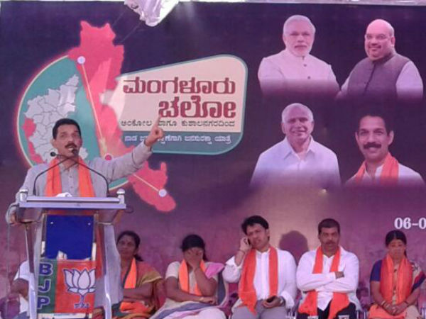 ಮಂಗಳೂರು ಹೊರವಲಯದ ಕುಳಾಯಿಯಲ್ಲಿ ನಡೆದ ಜನಸುರಕ್ಷಾ ಯಾತ್ರೆಯ ಬಹಿರಂಗ ಸಭೆಯನ್ನು ಉದ್ದೇಶಿಸಿ ಕಟೀಲ್ ಮಾತನಾಡಿದರು.