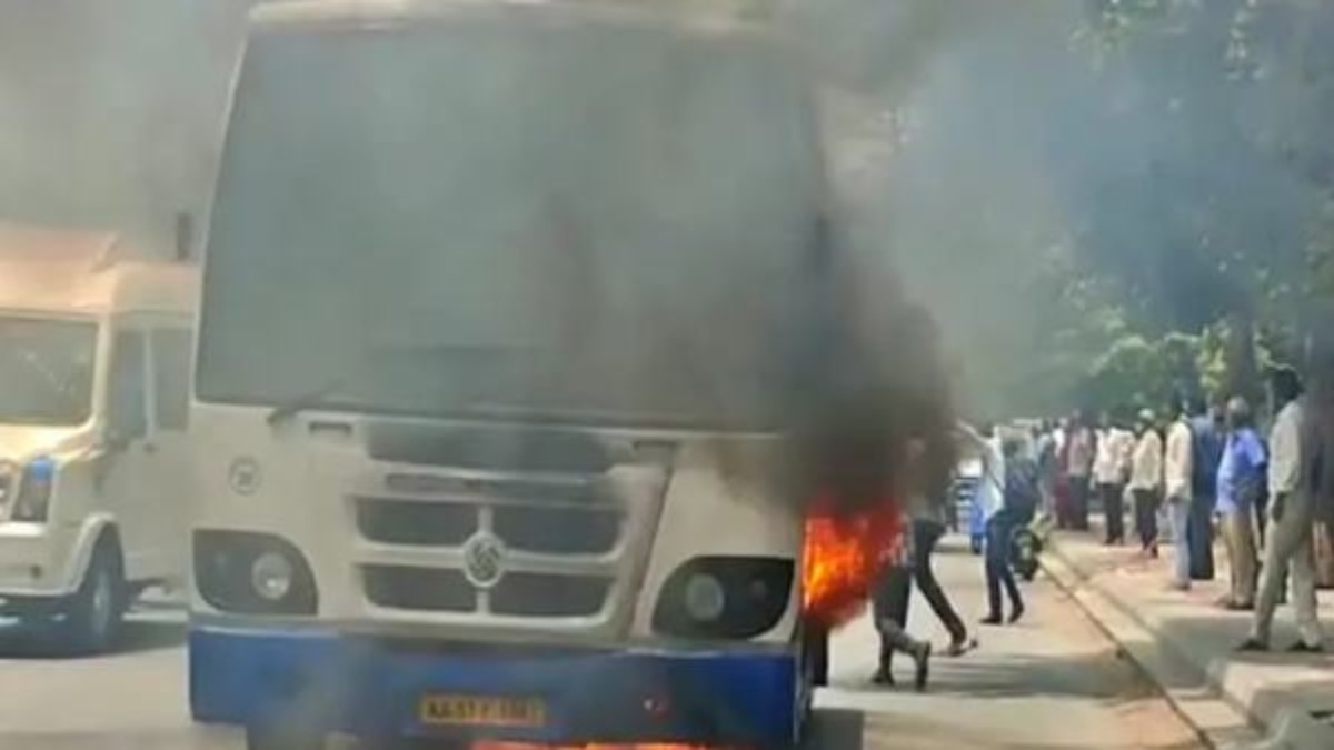 ಚಲಿಸುತ್ತಿದ್ದ ಬಿಎಂಟಿಸಿ ಬಸ್ ನಲ್ಲಿ ಬೆಂಕಿ; ಗಾಬರಿಗೊಂಡ ಪ್ರಯಾಣಿಕರು