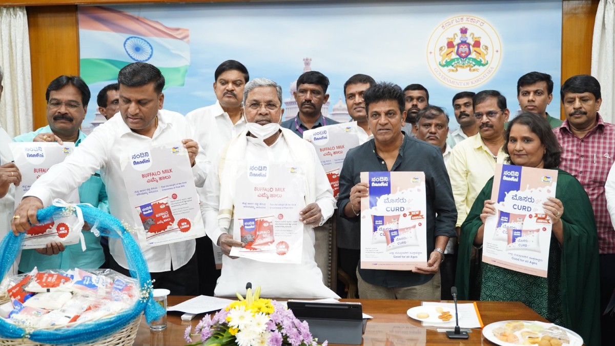 ಎಮ್ಮೆ ಹಾಲಿಗೆ ಬೇಡಿಕೆ ಹೆಚ್ಚಾದ ಬಳಿಕ ಕೆಎಂಎಫ್ ನಂದಿನಿ ಎಮ್ಮೆ ಹಾಲನ್ನು ಮಾರುಕಟ್ಟೆಗೆ ಬಿಡುಗಡೆ ಮಾಡಿದೆ. ಎಮ್ಮೆ ಹಾಲು ಸೇರಿದಂತೆ ವಿವಿಧ ಉತ್ಪನ್ನಗಳನ್ನು ಮುಖ್ಯಮಂತ್ರಿ ಸಿದ್ದರಾಮಯ್ಯ ಮತ್ತು ನಟ ಶಿವರಾಜ್ ಕುಮಾರ್ ಬಿಡುಗಡೆ ಮಾಡಿದರು.