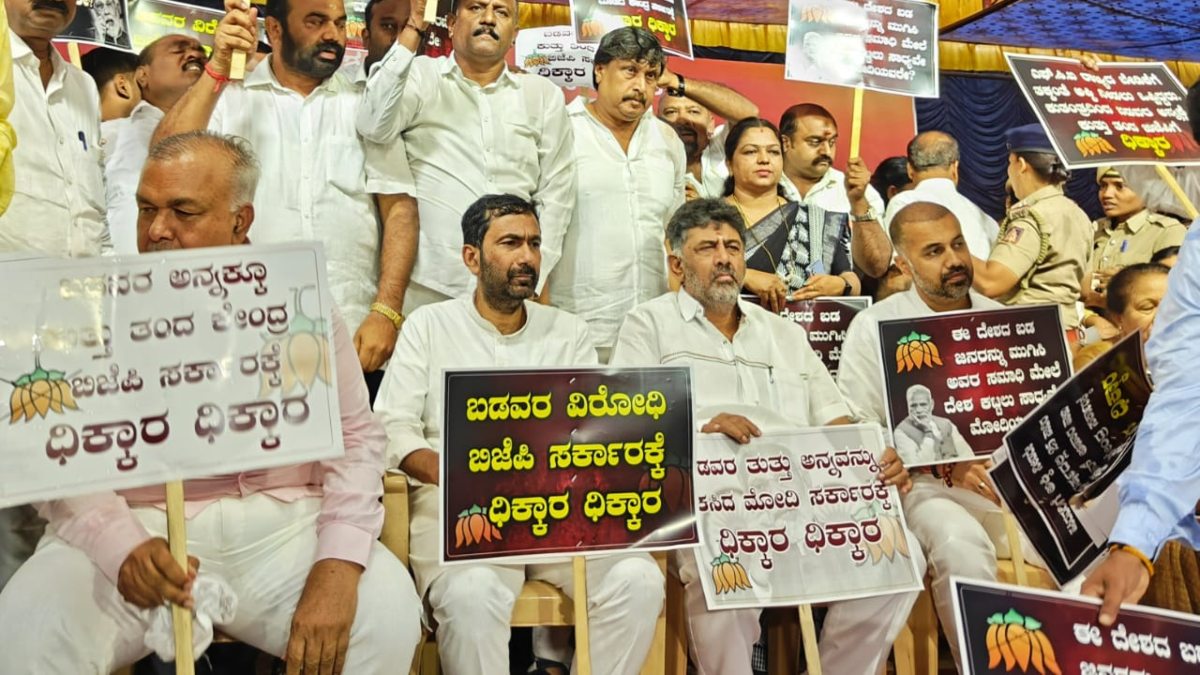 ಕರ್ನಾಟಕ ಸರ್ಕಾರದ ಅನ್ನ ಭಾಗ್ಯ ಯೋಜನೆಗೆ ಅಕ್ಕಿ ನಿರಾಕರಿಸಿದ ಆರೋಪದ ಮೇಲೆ ಬಿಜೆಪಿ ನೇತೃತ್ವದ ಕೇಂದ್ರ ಸರ್ಕಾರದ ವಿರುದ್ಧ ಕಾಂಗ್ರೆಸ್ ರಾಜ್ಯದ ಎಲ್ಲಾ ಜಿಲ್ಲಾ ಕೇಂದ್ರಗಳಲ್ಲಿ ಪ್ರತಿಭಟನೆ ನಡೆಸಿದರೆ, ಮತ್ತೊಂದೆಡೆ, ಬಿಪಿಎಲ್ ಕುಟುಂಬದ ಪ್ರತಿಯೊಬ್ಬ ಸದಸ್ಯರಿಗೆ ಕಾಂಗ್ರೆಸ್ ಸರ್ಕಾರ 10 ಕೆಜಿ ಅಕ್ಕಿ ನೀಡುತ್ತಿಲ್ಲ ಎಂದು ರಾಜ್ಯದ ಕೆಲವೆಡೆ ಪ್ರತಿಭಟನೆ ನಡೆಸಿದರು.