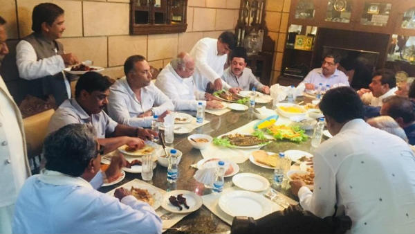 ಕರ್ನಾಟಕದಲ್ಲಿ ಕಾಂಗ್ರೆಸ್-ಜೆಡಿಎಸ್ ಸರ್ಕಾರ ಪತನಗೊಂಡ ಬಳಿಕ ಪಕ್ಷದ ಹಲವು ನಾಯಕರು ಒಟ್ಟಾಗಿದ್ದರು. ಸಿದ್ದರಾಮಯ್ಯ ದೆಹಲಿಯಿಂದ ಭಾನುವಾರ ವಾಪಸ್ ಆಗಿದ್ದು, ರಾಜ್ಯದ ಪ್ರಸ್ತುತ ಬೆಳವಣಿಗೆಗಳ ಬಗ್ಗೆ ನಾಯಕರು ಮಾತುಕತೆ ನಡೆಸುತ್ತಾ ಭೋಜನ ಸವಿದಿದ್ದಾರೆ.