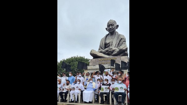ಬೆಂಗಳೂರು, ಡಿ. 08: ರೈತರಿಗೆ ಮಾರಕವಾದ ಕೃಷಿ ಕಾಯ್ದೆಗಳನ್ನು ಜಾರಿಗೆ ತರಲು ಹೊರಟಿರುವ ಕೇಂದ್ರ, ರಾಜ್ಯ ಬಿಜೆಪಿ ಸರ್ಕಾರದ ವಿರುದ್ಧ ಕಾಂಗ್ರೆಸ್ ಪಕ್ಷದ ಶಾಸಕರು, ಮುಖಂಡರು ವಿಧಾನಸೌಧ ಆವರಣದಲ್ಲಿನ ಮಹಾತ್ಮ ಗಾಂಧಿ ಪ್ರತಿಮೆ ಮುಂಭಾಗ ಪ್ರತಿಭಟನೆ ನಡೆಸಿದರು. ವಿಧಾನಸಭೆಯ ವಿರೋಧ ಪಕ್ಷದ ನಾಯಕ ಸಿದ್ದರಾಮಯ್ಯ, ಕೆಪಿಸಿಸಿ ಅಧ್ಯಕ್ಷ ಡಿ.ಕೆ. ಶಿವಕುಮಾರ್, ಡಾ.ಜಿ. ಪರಮೇಶ್ವರ, ಎಸ್.ಆರ್. ಪಾಟೀಲ್, ಬಿ.ಕೆ. ಹರಿಪ್ರಸಾದ್, ಕೆ.ಜೆ. ಜಾರ್ಜ್, ರಾಮಲಿಂಗಾರೆಡ್ಡಿ ಸೇರಿದಂತೆ ಕಾಂಗ್ರೆಸ್ ನಾಯಕರು, ಶಾಸಕರು ಭಾಗವಹಿಸಿದ್ದರು.