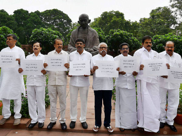 ಪ್ರತಿ ಕ್ವಿಂಟಲ್ ಅಡಿಕೆಗೆ ಕನಿಷ್ಠ 40,000 ರು. ಪ್ರತಿ ಕ್ವಿಂಟಲ್ ತೆಂಗಿಗೆ 3,000 ರು. ಬೆಂಬಲಬೆಲೆ ನೀಡಬೇಕು ಎಂದು ಒತ್ತಾಯ ಮಾಡಿದರು. ಕಾಂಗ್ರೆಸ್ನ ಕೇರಳದ ಸಂಸದರೂ ಪ್ರತಿಭಟನೆಯಲ್ಲಿ ಪಾಲ್ಗೊಂಡಿದ್ದರು.[ಆಮದು ನಿಷೇಧ ಅಡಿಕೆ ಬೆಳೆಗಾರರ ಹಿತ ಕಾಯುವುದೆ?]
