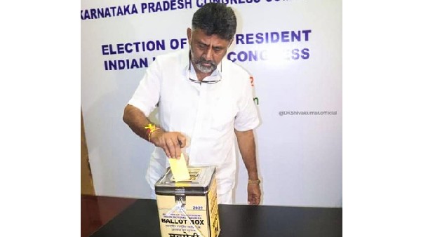 Breaking; ಕಾಂಗ್ರೆಸ್ ಅಧ್ಯಕ್ಷೀಯ ಚುನಾವಣೆ, ಮೊದಲ ಮತ ಹಾಕಿದ ಡಿಕೆಶಿ