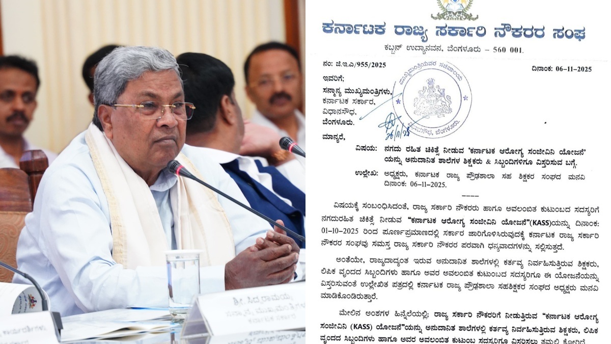 ರ್ನಾಟಕ ಆರೋಗ್ಯ ಸಂಜೀವಿನಿ ಯೋಜನೆಗೆ ಸಂಬಂಧಿಸಿದಂತೆ ಮುಖ್ಯಮಂತ್ರ ಸಿದ್ಧರಾಮಯ್ಯ ಅವರಿಗೆ ಪತ್ರ ಬರೆದಿರುವಂತ ಅವರು, ರಾಜ್ಯ ಸರ್ಕಾರಿ ನೌಕರರು ಹಾಗೂ ಅವಲಂಬಿತ ಕುಟುಂಬದ ಸದಸ್ಯರಿಗೆ ನಗದುರಹಿತ ಚಿಕಿತ್ಸೆ ನೀಡುವ "ಕರ್ನಾಟಕ ಆರೋಗ್ಯ ಸಂಜೀವಿನಿ ಯೋಜನೆ"(KASS)ಯನ್ನು ದಿನಾಂಕ: 01-10-2025 ರಿಂದ ಪೂರ್ಣಪ್ರಮಾಣದಲ್ಲಿ ಸರ್ಕಾರ ಜಾರಿಗೊಳಿಸಿರುವುದಕ್ಕೆ ಕರ್ನಾಟಕ ರಾಜ್ಯ ಸರ್ಕಾರಿ ನೌಕರರ ಸಂಘವು ಸಮಸ್ತ ರಾಜ್ಯ ಸರ್ಕಾರಿ ನೌಕರರ ಪರವಾಗಿ ಧನ್ಯವಾದಗಳನ್ನು ಸಲ್ಲಿಸುತ್ತದೆ.