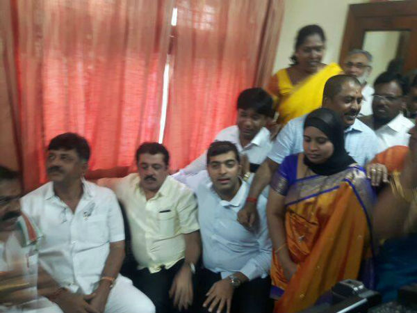 ಬೆಂಗಳೂರಿನ ಕಾವಲ್ ಭೈರಸಂದ್ರದಲ್ಲಿರುವ ಅಖಂಡ ಶ್ರೀನಿವಾಸಮೂರ್ತಿ ಅವರ ನಿವಾಸಕ್ಕೆ ಮಂಗಳವಾರ ಡಿ.ಕೆ.ಶಿವಕುಮಾರ್ ಭೇಟಿ ನೀಡಿ, ಉಪಹಾರ ಸವಿದರು. ಚಾಮರಾಜಪೇಟೆ ಶಾಸಕ ಜಮೀರ್ ಅಹಮದ್ ಖಾನ್ ಸೇರಿದಂತೆ ಇತರ ನಾಯಕರು ಈ ಸಂದರ್ಭದಲ್ಲಿ ಜೊತೆಗಿದ್ದರು.