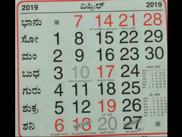 5. ಏಪ್ರಿಲ್ 14 - ಭಾನುವಾರ, ಡಾ. ಅಂಬೇಡ್ಕರ್ ಜಯಂತಿ, ಸೌರಮಾನ ಯುಗಾದಿ