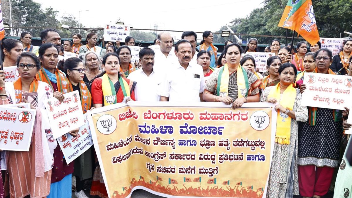 ಬೆಂಗಳೂರಿನ ಮೇಖ್ರಿ ವೃತ್ತದಲ್ಲಿ ಮಹಿಳಾ ಮೋರ್ಚಾ ವತಿಯಿಂದ ಶನಿವಾರ ನಡೆದ ಬೃಹತ್ ಪ್ರತಿಭಟನೆಯಲ್ಲಿ ಮಾತನಾಡಿದ ಅವರು, ರಾಜ್ಯದಲ್ಲಿ ಕಾನೂನು ಸುವ್ಯವಸ್ಥೆ ಹದಗೆಟ್ಟಿದೆ. ಇದನ್ನು ಖಂಡಿಸಿ ನಾವು ಇಲ್ಲಿ ಪ್ರತಿಭಟನೆ ಮಾಡುತ್ತಿದ್ದೇವೆ. ಪೆÇಲೀಸರು ಇಲ್ಲಿ ಪ್ರತಿಭಟನೆ ಮಾಡಬಾರದು ಎಂದು ಹೇಳಿದ್ದಾರೆ. ಇಷ್ಟು ಕೆಟ್ಟ ಆಡಳಿತವನ್ನು ನನ್ನ ಜೀವನದಲ್ಲೇ ನೋಡಿಲ್ಲ. ಆಡಳಿತ ವ್ಯವಸ್ಥೆ ಪೂರ್ತಿ ಹದಗೆಟ್ಟಿದೆ. ಮಹಿಳೆಯರ ಮೇಲೆ ಅತ್ಯಾಚಾರ ಹೆಚ್ಚಾಗಿದೆ ಎಂದು ಟೀಕಿಸಿದರು.