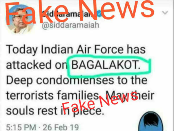 ಬೆಂಗಳೂರು, ಫೆಬ್ರವರಿ 27 : ಬಾಲಾಕೋಟ್ ಪ್ರದೇಶದಲ್ಲಿರುವ ಉಗ್ರರ ಶಿಬಿರದ ಮೇಲೆ ನಡೆಸಿದ ದಾಳಿಯ ಬಗ್ಗೆ ಸಿದ್ದರಾಮಯ್ಯ ಟ್ವೀಟ್ ಅನ್ನು ನಕಲು ಮಾಡಿ ಟ್ರಾಲ್ ಮಾಡಲಾಗಿದೆ. ಸಿದ್ದರಾಮಯ್ಯ ಅವರು ಈ ಕುರಿತು ಸ್ಪಷ್ಟನೆಯನ್ನು ನೀಡಿದ್ದಾರೆ.