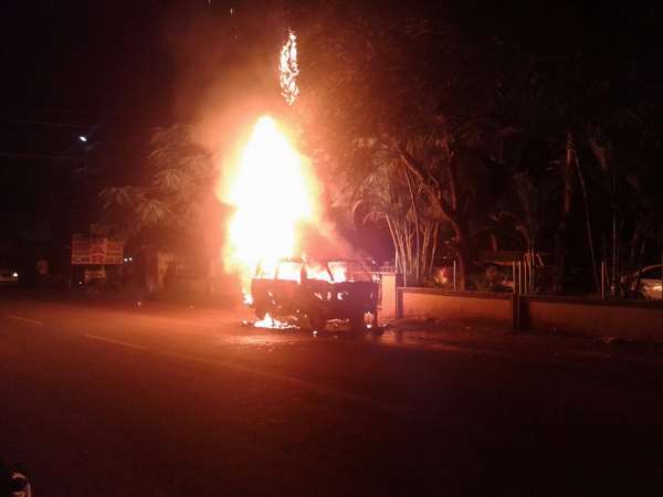 ಶಿರಸಿ: ಸಿಲಿಂಡರ್ ಸ್ಫೋಟಿಸಿ ಹೊತ್ತಿ ಉರಿದ ಓಮ್ನಿ