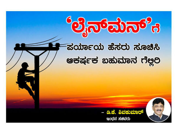 ‘ಲೈನ್ಮನ್’ಗೆ ಪರ್ಯಾಯ ಹೆಸರು ಸೂಚಿಸಿ ಬಹುಮಾನ ಗೆಲ್ಲಿ: ಡಿಕೆಶಿ