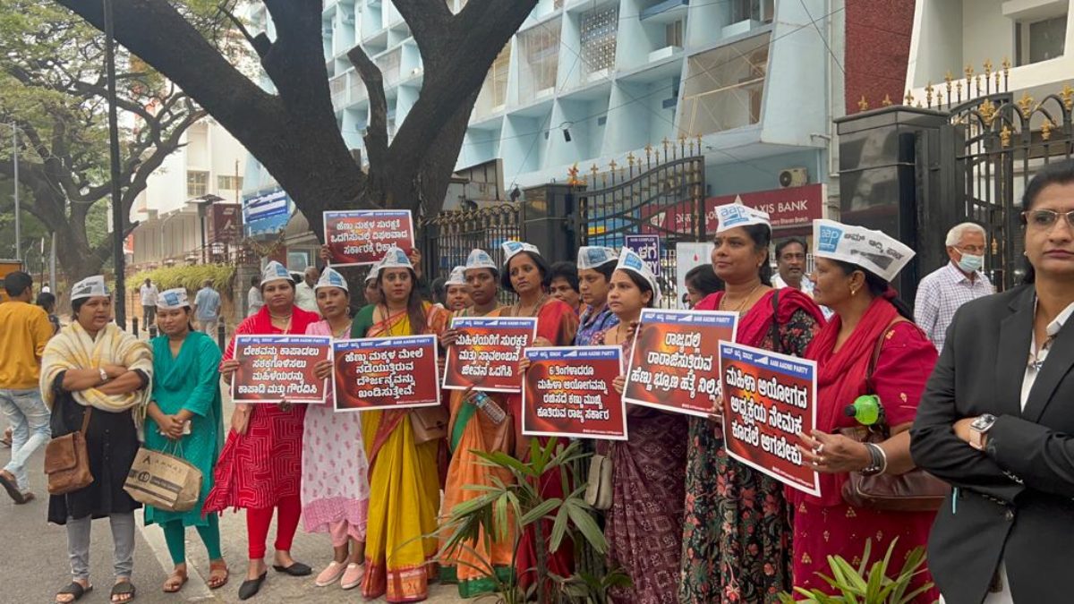 ಪ್ರತಿಭಟನೆಯಲ್ಲಿ ಆಮ್ ಆದ್ಮಿ ಪಕ್ಷದ ಬೆಂಗಳೂರು ಮಹಿಳಾ ಘಟಕದ ಅಧ್ಯಕ್ಷೆ ವೀಣಾ ರಾವ್, ರಾಜ್ಯ ಕಾರ್ಯದರ್ಶಿ ಉಷಾ ಮೋಹನ್, ಅಂಜನಾ ಗೌಡ, ಮರಿಯ, ಪುಷ್ಪ ಕೇಶವ್ , ಸತ್ಯವಾಣಿ ಸೇರಿದಂತೆ ಇತರೆ ಮುಖಂಡರು ಮತ್ತು ಕಾರ್ಯಕರ್ತೆಯರು ಭಾಗವಹಿಸಿದ್ದರು.