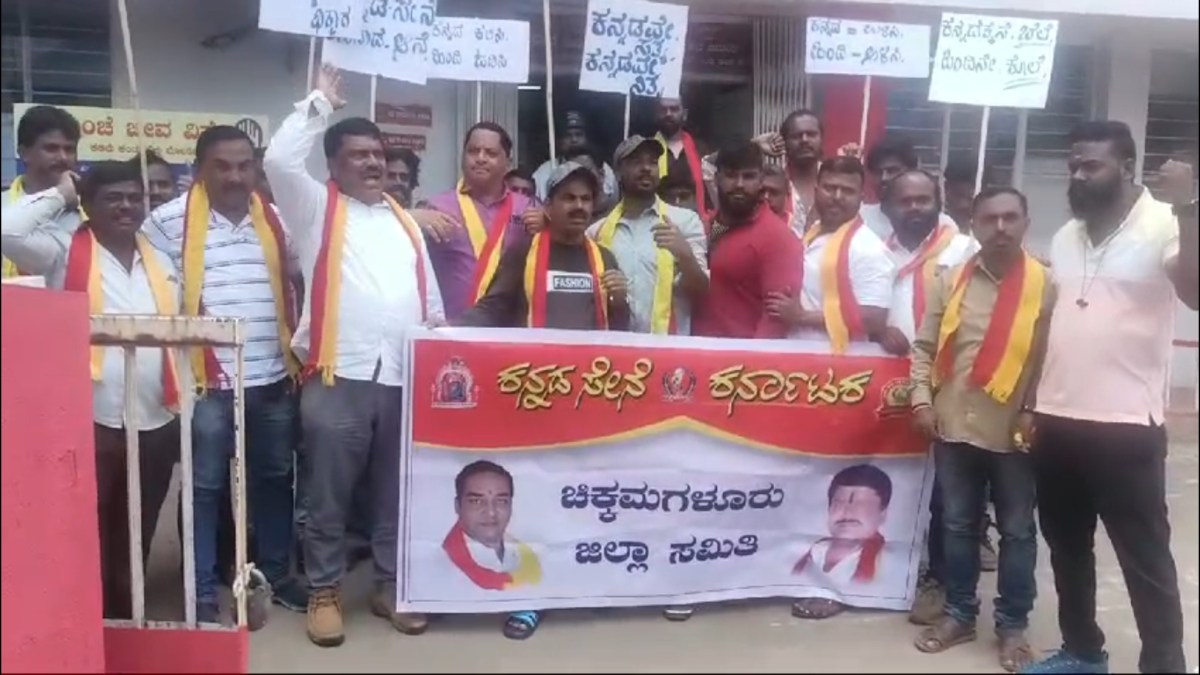 ಹಿಂದಿ ದಿವಸ್ ಆಚರಣೆ ವಿರುದ್ಧ ಕರವೇ ಪ್ರತಿಭಟನೆ