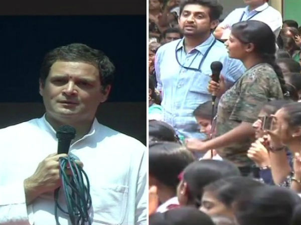 ರಾಹುಲ್ ಗೆ ವಿದ್ಯಾರ್ಥಿನಿಯೊಬ್ಬರು ಕನ್ನಡದಲ್ಲಿ ಪ್ರಶ್ನೆ ಕೇಳಿದರು. "ಕರ್ನಾಟಕ ಸರ್ಕಾರದ ಯೋಜನೆಗಳನ್ನು ಸಮುದಾಯದ ಆಧಾರದಲ್ಲಿ ಯಾಕೆ ಜಾರಿಗೆ ತರುತ್ತೀರಿ. ಎಲ್ಲರೂ ಒಂದೇ ಅಲ್ಲವೆ?" ಎಂಬ ಪ್ರಶ್ನೆ ಕೇಳಿದರು. ಆಗ ರಾಹುಲ್ ಗಾಂಧಿಯವರಿಗೆ ಪ್ರಶ್ನೆ ಅರ್ಥವಾಗದ ಹಿನ್ನಲೆಯಲ್ಲಿ ಅಲ್ಲೇ ಇದ್ದ ಮುಖ್ಯಮಂತ್ರಿ ಸಿದ್ದರಾಮಯ್ಯ ಉತ್ತರಿಸಲು ಮುಂದೆ ಬಂದ ಘಟನೆ ನಡೆಯಿತು.